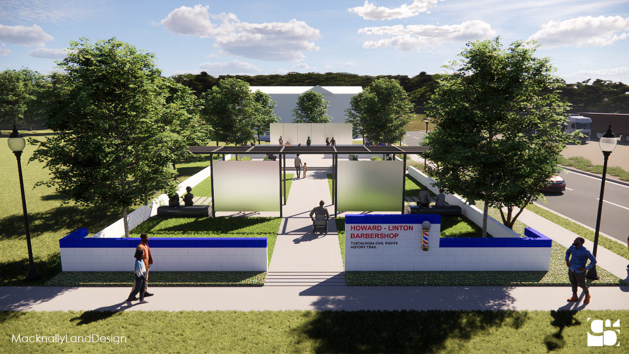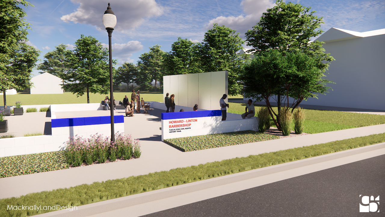 The Linton Barbershop Civil Rights Plaza transforms the historic site of the Howard-Linton Barbershop into a public space for education and community engagement on the City of Tuscaloosa’s Civil Rights Trail.